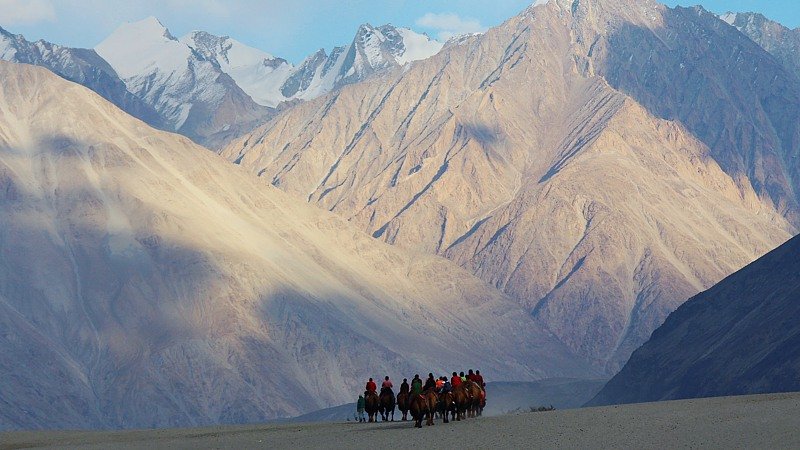 Nubra Valley, also known as 'the valley of flowers' (Ldumra), is a beautiful region situated between the Karakoram and Ladakh mountain ranges. The average altitude of the valley is 10,000 ft. Upon arrival in the village of Hunder, you will check into your camp. In the evening, you will have the opportunity to take a walk through the small villages and observe the daily life of the local people in this remote part of the world.