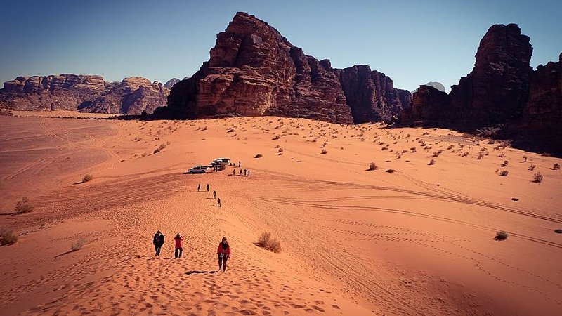 Later in the afternoon, we leave Petra and drive into the spectacular desert scenery of Wadi Rum. Whilst staying in Wadi Rum, several optional activities are available to enhance your desert experience, such as taking a traditional camel ride through the sand dunes, soaring above the landscape on a hot air balloon flight (typically at dawn, weather permitting), or enjoying an adventurous desert quad biking excursion. Upon arrival at our camp, friendly Bedouin hosts will greet us at our comfortable site, nestled beneath towering rocks and cliffs. We spend the evening relaxing at the camp and enjoying a delicious traditional Jordanian meal. As night falls and the stars emerge, there is also an option to join a captivating astronomy experience, taking advantage of Wadi Rum's exceptionally clear desert skies and unique vantage point to observe stars, constellations, and planets in incredible detail.