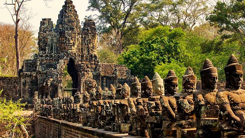 After breakfast at your hotel, we will begin a full-day tour of the magnificent temples of the Angkor area, a truly unforgettable experience. Our first stop is the ancient city of Angkor Thom, entering through its impressive South Gate, which is famous for the colossal stone faces that greet you. Inside the city, we'll explore the mesmerising Bayon Temple, with its 216 enigmatic smiling faces, as well as the Royal Enclosure, Phimeanakas, the Elephant Terrace, and the Terrace of the Leper King.