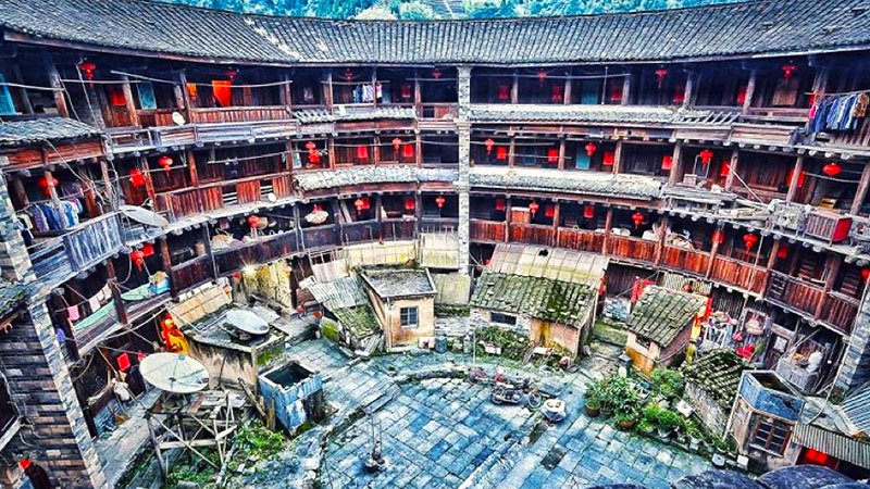 Today, we take a bullet train to Nanjing in Fujian Province to meet your new Adventure Leader. From there, a minivan will transport us deep into the stunning tea-growing hills to explore a traditional Hakka tulou—the unique, centuries-old mud homes. Tonight is a truly rare opportunity, as you will be staying inside one of these historical roundhouses, allowing you to fully absorb the atmosphere and history of this incredible setting. Your evening is free to relax and socialise: you might choose to join a movie night, head out for karaoke, or even practise your Mandarin with the locals.