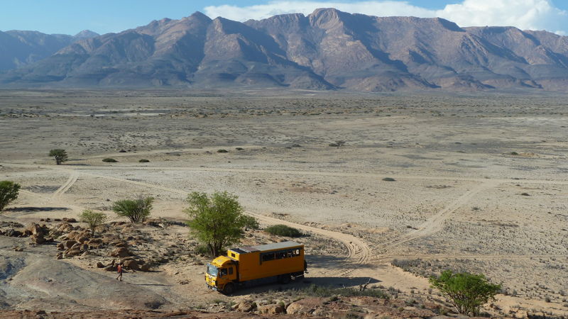 After breakfast, we’ll head south to Namib-Naukluft National Park. The drive will take us through breathtaking desert and mountain scenery, making it hard to focus on the road! That evening, we’ll camp in a beautiful spot near the Sossusvlei dunes, inside the park, which is home to the world’s tallest sand dunes and one of the planet’s largest salt pans.